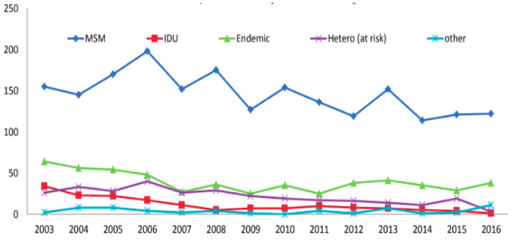 Note: Endemic countries are those with an HIV prevalence equals or higher thant 1.0% in the population aged 15-49 years-old and at least 1 of 3 of the following features : a) 50% or more of HIV infections attributed to heterosexual transmission, b) M:F ratio less or equal to 2:1 or c) HIV prevalence equals or higher to 2% in women receiving prenatal care.